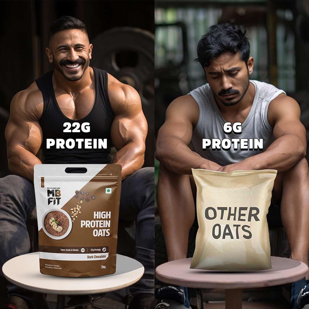- PROTEIN POWER HOUSE: MuscleBlaze High Protein Oats provides 22g protein. Feel satiated for longer with satisfying protein in each spoonful